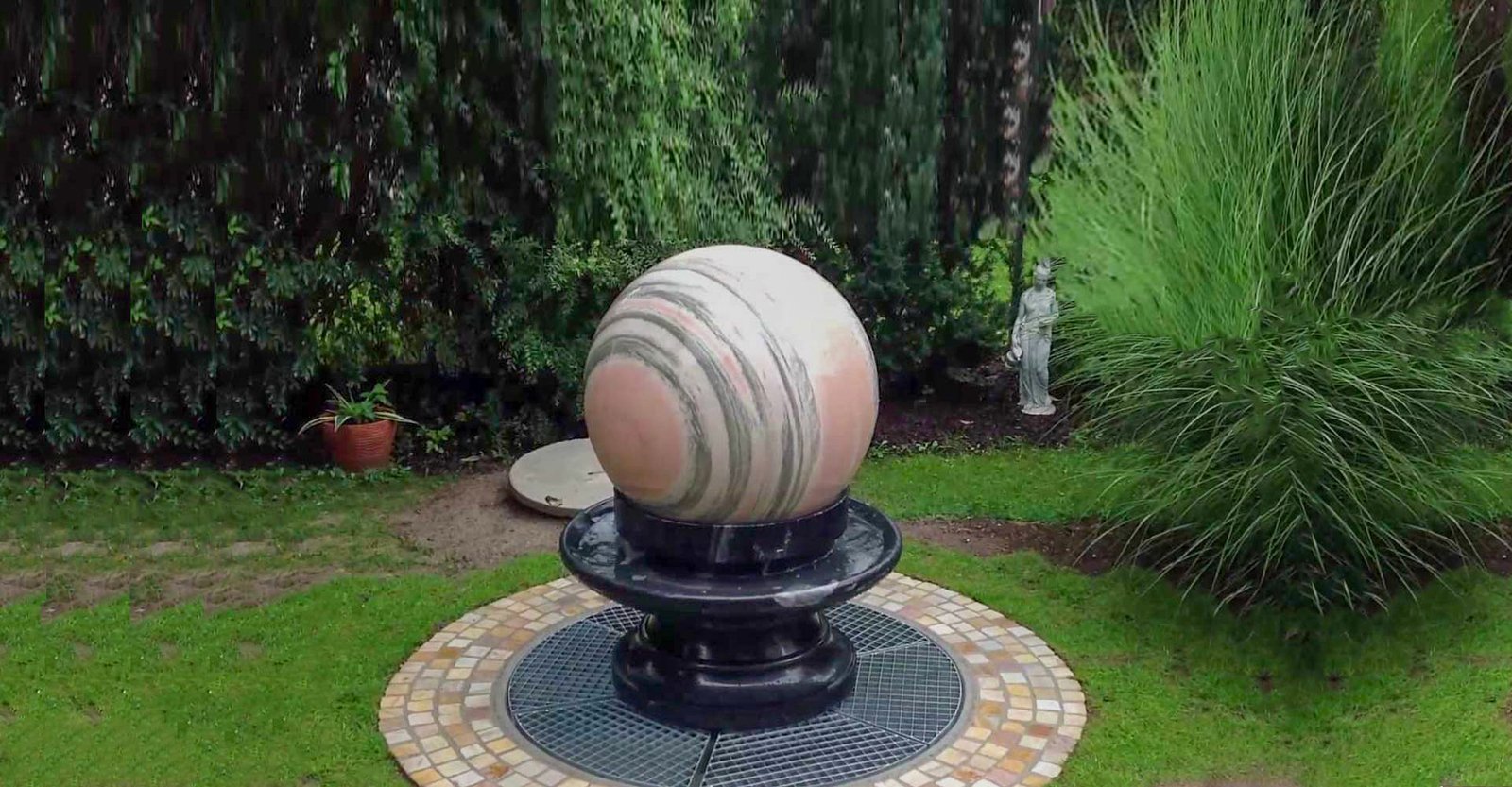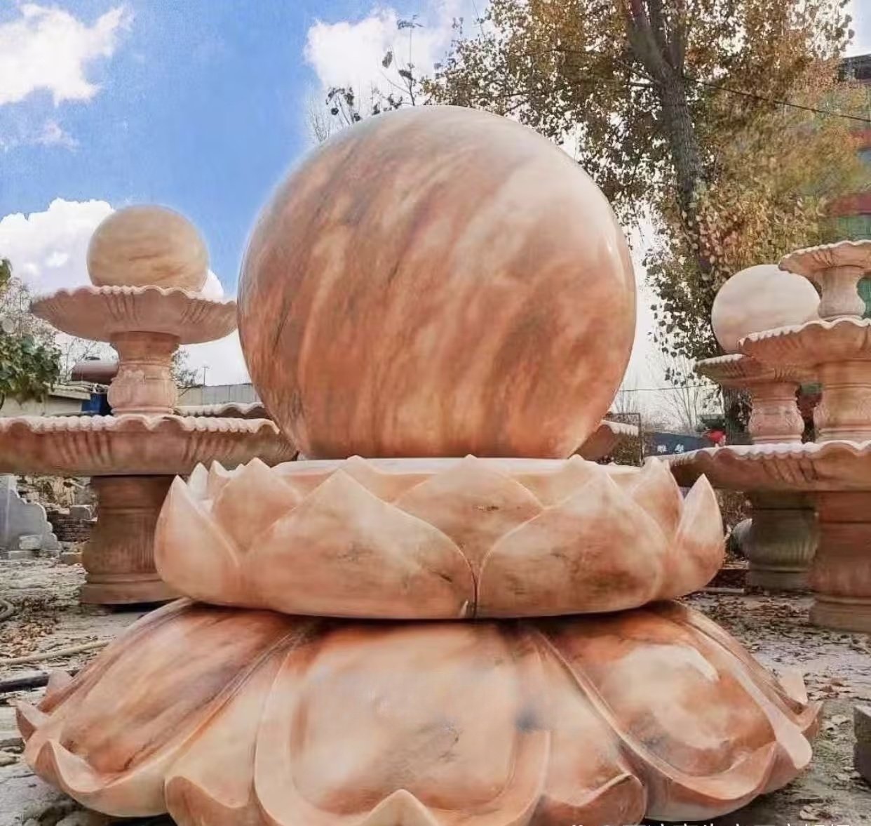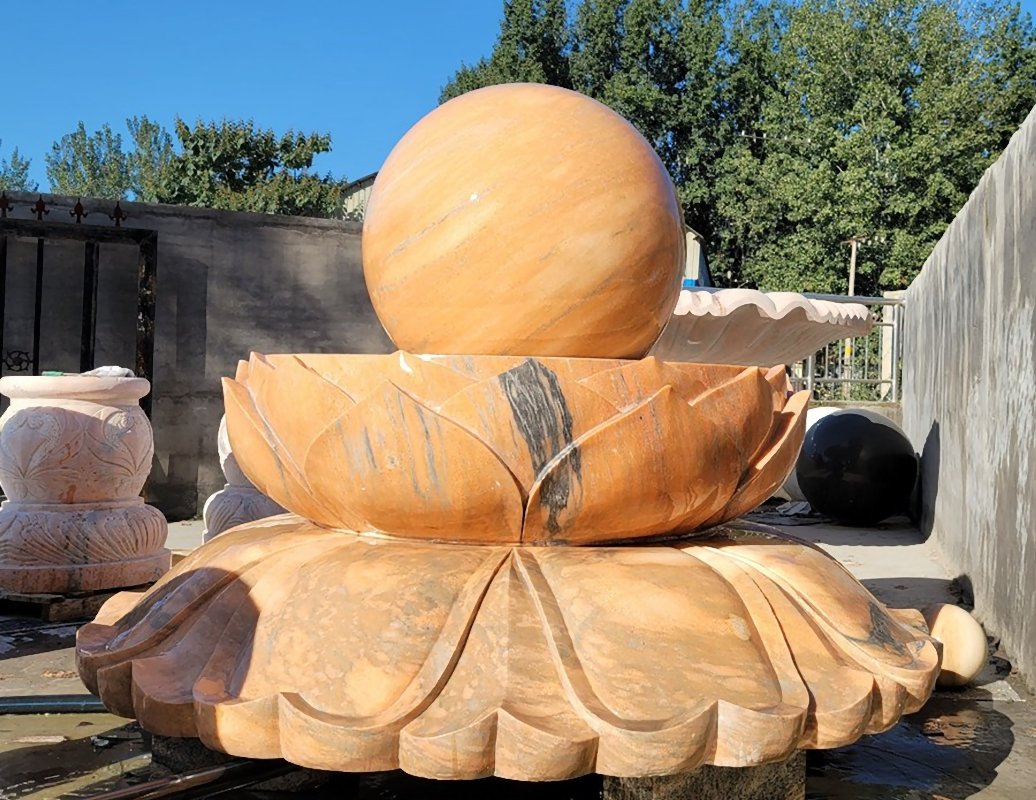 A rotating marble Feng Shui sphere harmonizes energy flow in homes or offices. Carved from a single stone block, it symbolizes balance and prosperity. Place it in entrances or living areas for tranquil ambiance.